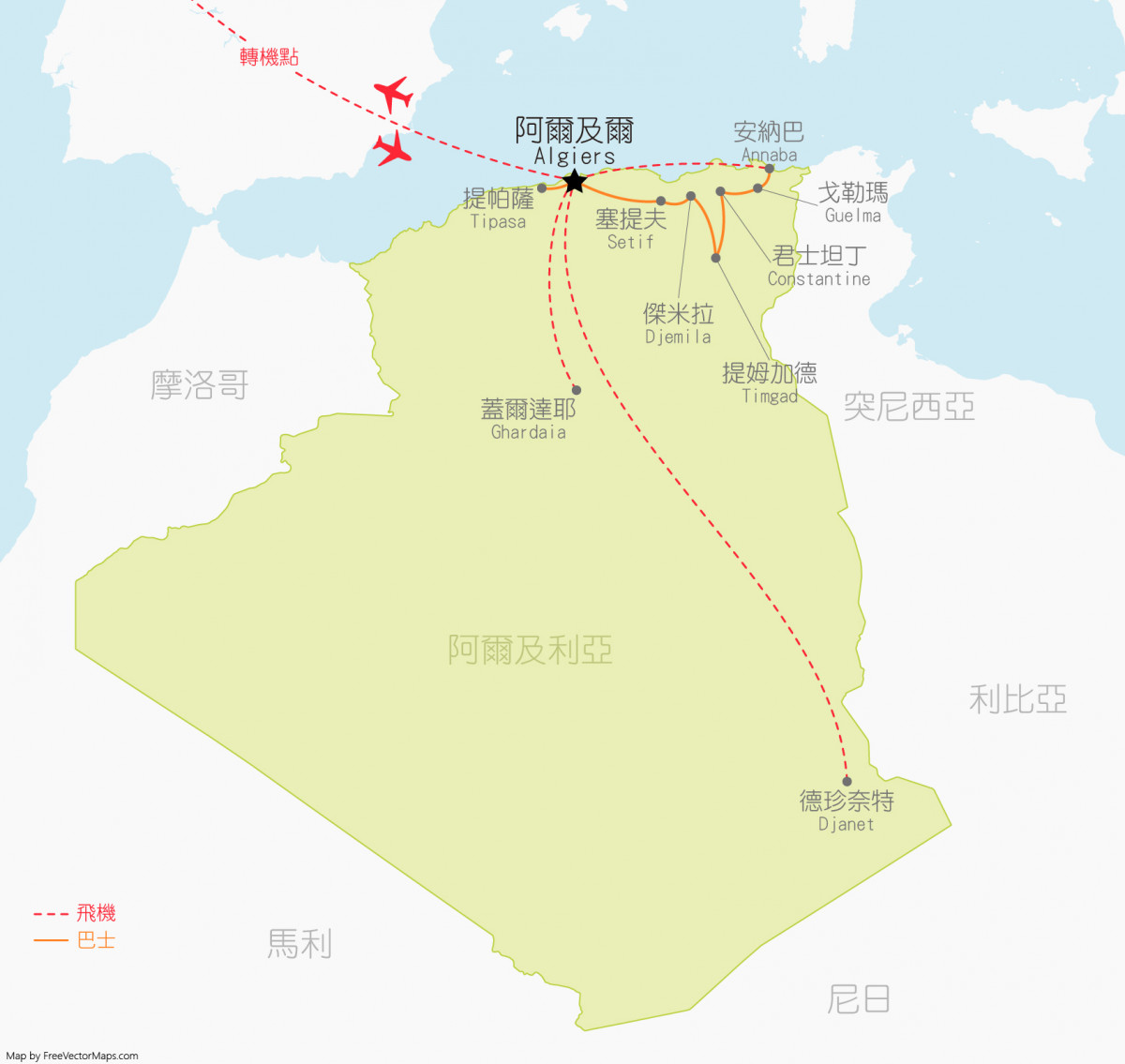 依照阿爾及利亞政府現行規範,我國人持普通護照(6個月以上效期)赴阿爾及利亞,需申請簽證才能入境。