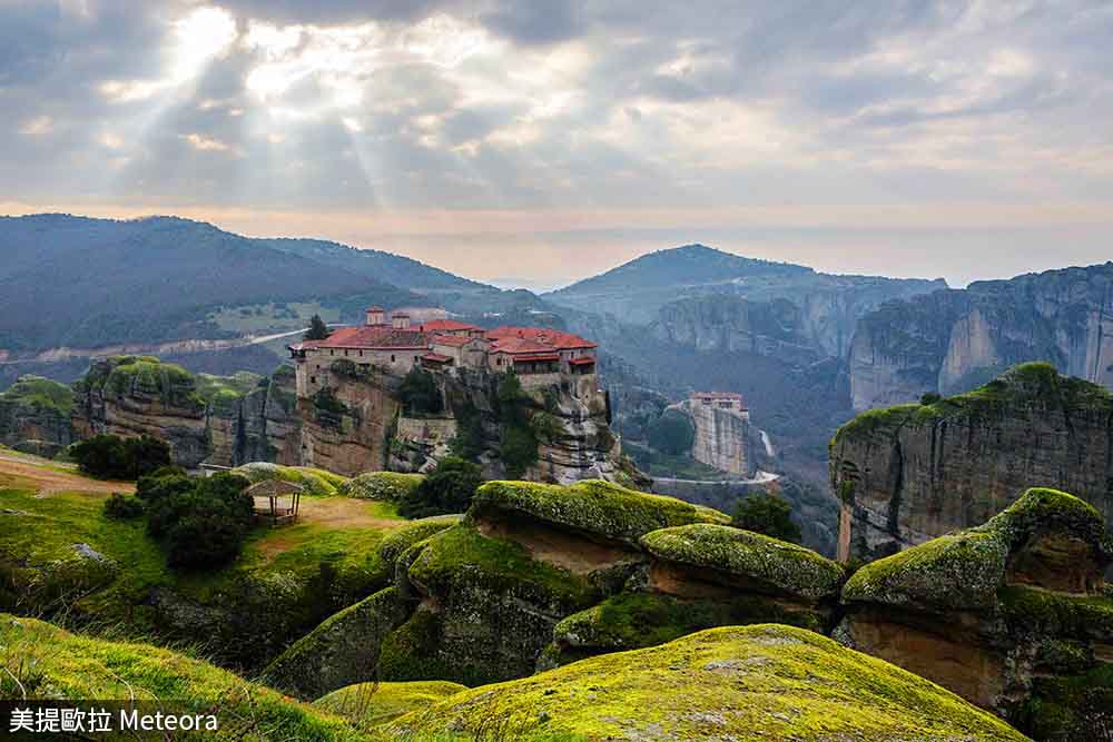 「美提歐拉」在希臘語中是指「懸在半空之中」的意思,東正教的修道院就建在這些懸在半空的巨石之上,世界上很少有地方具有如此震撼的視覺美景。這些奇幻的岩層絕非筆墨可以形容,這裡一度曾經多達24座修道院,如今只剩6座,無論如何來到這裡,看到這等美景,親眼目睹這些建築,都會發自內心的讚嘆不已。