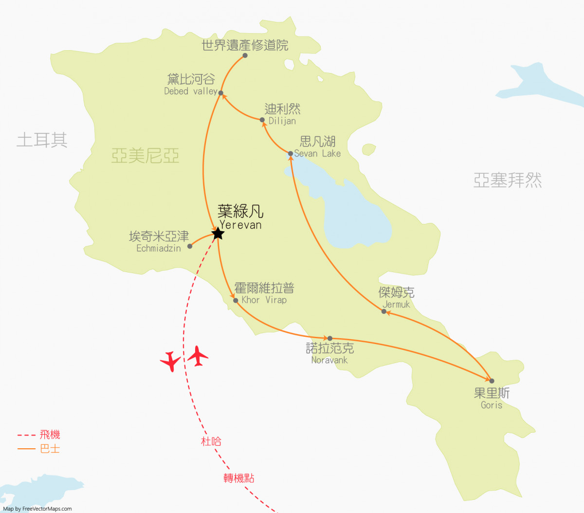 傑姆克Jermuk(175KM)思凡湖Sevan-(35KM)迪利然Dilijan-(62KM)黛比河谷